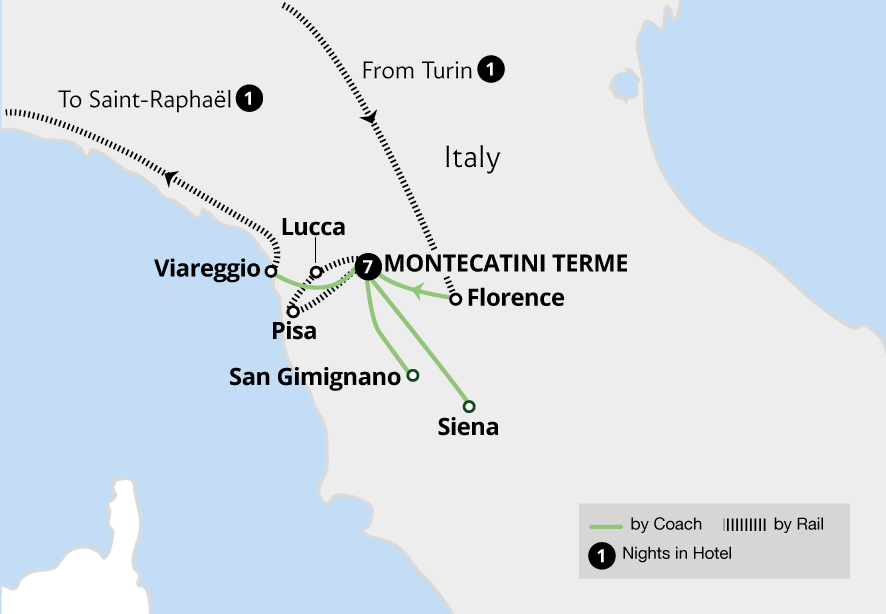 • Spend 7 nights in a 4-star hotel in beautiful Tuscan spa town Montecatini Terme