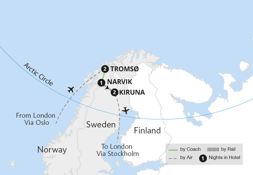 Uncover the delights of Arctic Norway and Sweden on a journey from Tromsø to Narvik and Kiruna. Discover the lives of Sámi people and their reindeer and travel across the wilderness into Swedish Lapland aboard the Ofoten Railway. Enjoy a sled ride through a winter wonderland hauled by enthusiastic huskies - one of the best ways to...