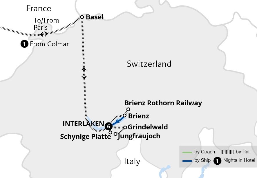 Experience the stunning Swiss Alps on a Great Rail Journeys' all-inclusive holiday, spending six nights in a beautiful Belle Époque hotel in Interlaken, an idyllic town renowned as the gateway to the Swiss Alps. From this refined base, explore the highlights of the beloved Bernese Oberland, including the Schynige Platte Botanical Alpine ...