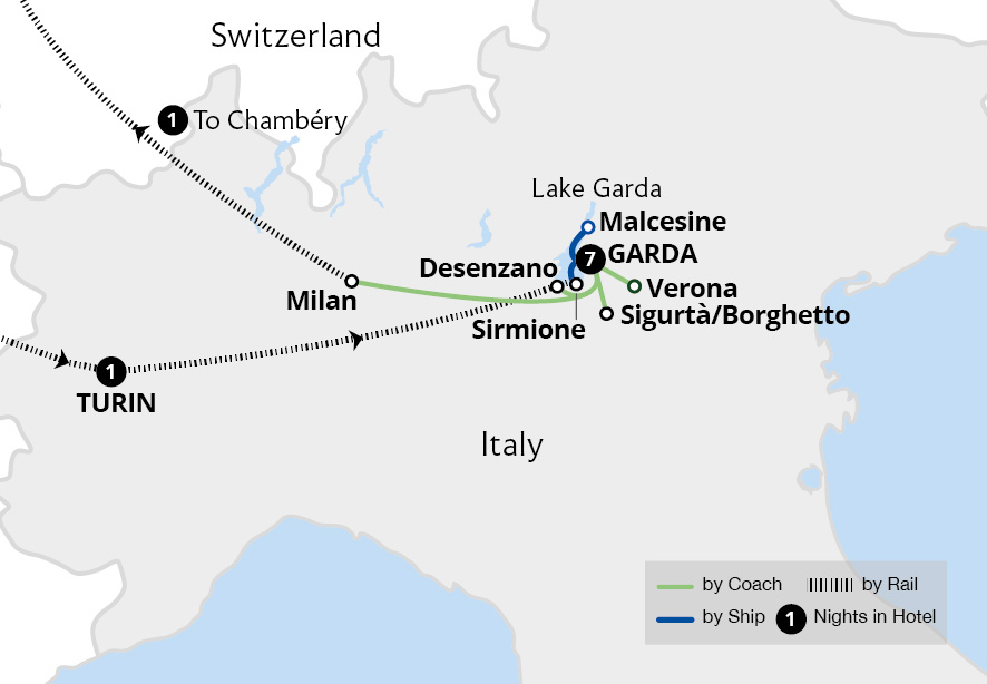 Soak up the laid-back atmosphere of one of Italy's most beautiful lakes to peaceful Lake Garda, staying in the hidden gem of Garda town. Sail to the idyllic lakeside towns of Sirmione and Malcesine to uncover colourful streets and amazing views of the lake circled by alpine foothills. Stroll amid the botanical gardens of Sigurtà, admiring...