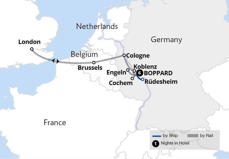 Enjoy a holiday in one of Europe's great regions, Germany's Rhine Valley - a UNESCO World Heritage site brimming with idyllic towns and verdant landscapes. From a base in the picturesque town of Boppard, huddled beside Germany's Rhine River, set sail for a scenic cruise into the picturesque Rhine Gorge. Discover the area's legends while...