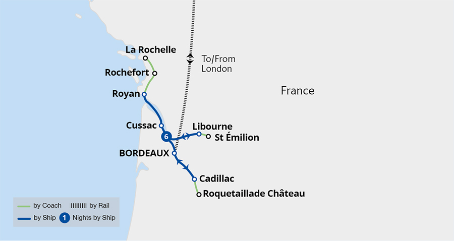 Experience the idyllic landscapes of the Bordeaux wine region on a leisurely river cruise on the Garonne and Dordogne. Discover Bordeaux's 18th-century grandeur and cruise to medieval St Émilion, where ancient caves and Europe's largest monolithic church await. Explore the renowned Médoc wine route, visit the prestigious Rochefort and...