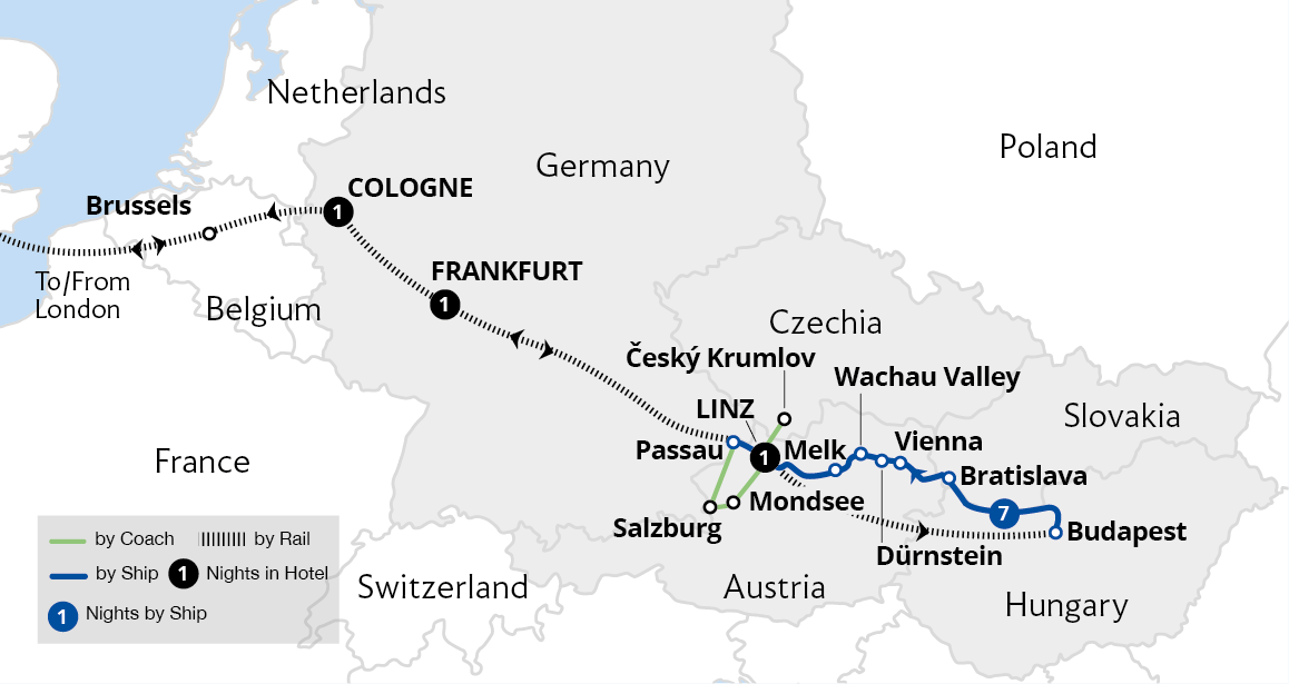 Enjoy a leisurely cruise through four countries and three capital cities, basking in beautiful river scenery all the way. Sail from the German town of Passau through the Austrian wine-growing region of the Wachau Valley, admiring picturesque Dürnstein and Melk Abbey enroute. After exploring imperial Vienna, the captivating Hungarian capital...