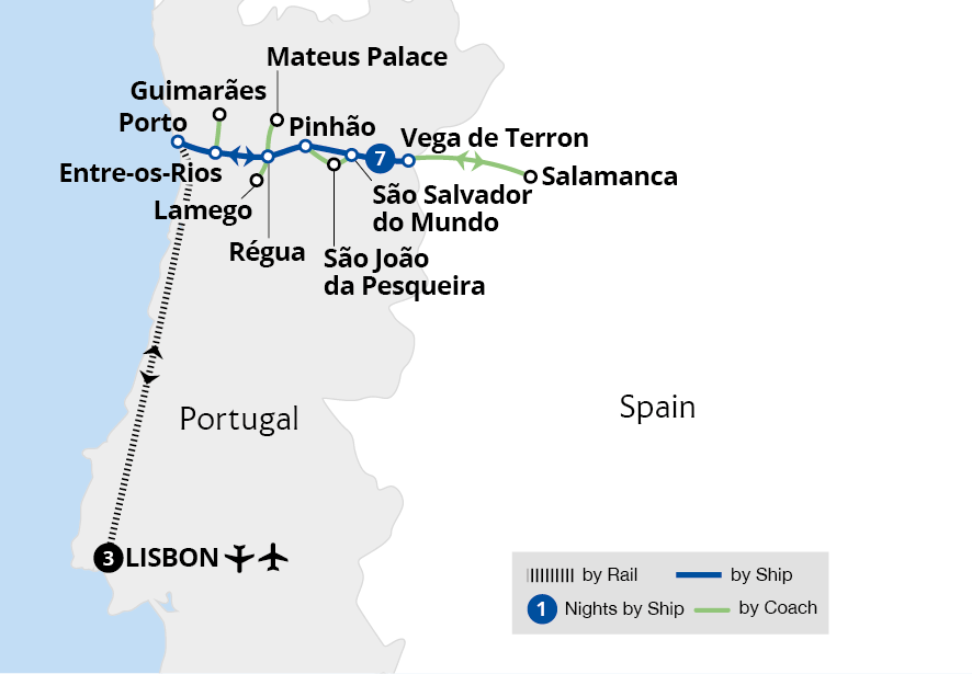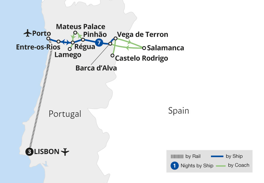 Fly to Lisbon to uncover the sights of the capital on a guided tour including a trip on a heritage tram. After visiting Sintra's colourful palaces, journey to Porto to board a brand-new ship for a cruise along the golden Douro. Superb excursions to Lamego Cathedral, Castelo Rodrigo, Salamanca and Mateus Palace are enhanced by dinner at a...