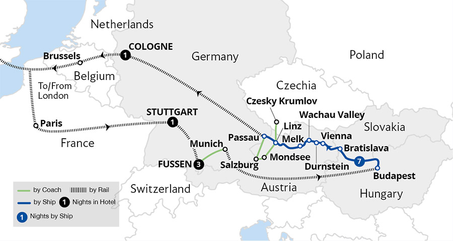 After your rail tour, relax during a luxury cruise on one of Europe's most scenic rivers. Each itinerary has been hand-crafted especially with cruise in mind.