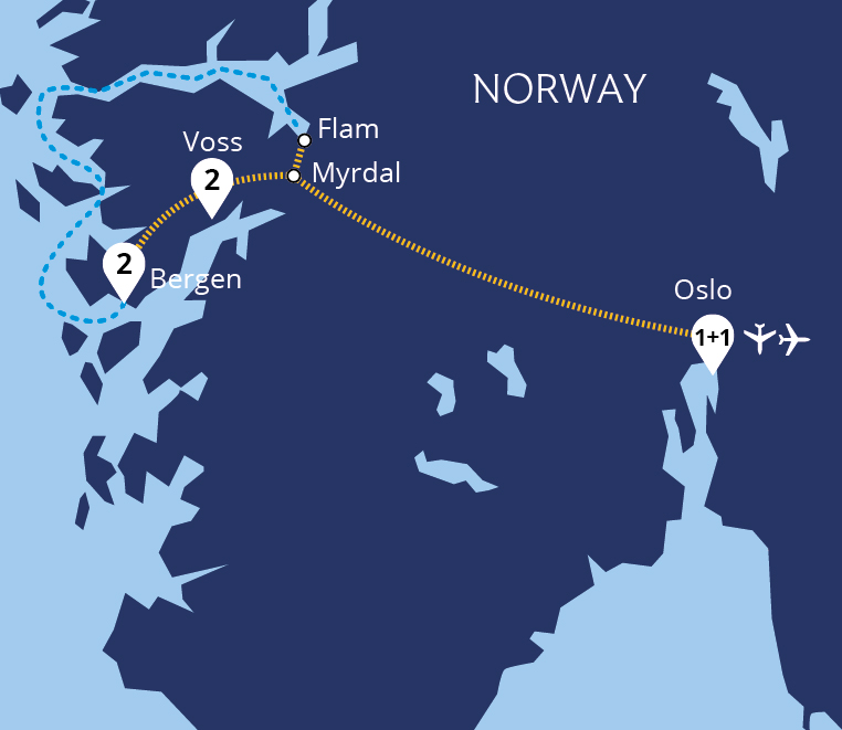 Experience the beauty of Norway from its natural wonders to charming cities on this delightful tour across stunning landscapes. Journey through the impressive wilderness of plateaus and waterfalls on two of the world's most famous train journeys: the Bergen Railway and the Flåm Railway. Marvel at towering cliff faces on a sensational...
