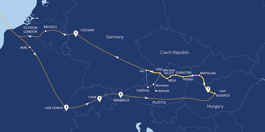 As we glide through the majestic Swiss Alps on the iconic Glacier Express, we enjoy unrivalled views of the awe-inspiring landscapes that surround us. This holiday is a perfect blend of beauty and culture as we ride on mountain railways, discover charming towns, and sail the Danube river from Budapest to Passau.