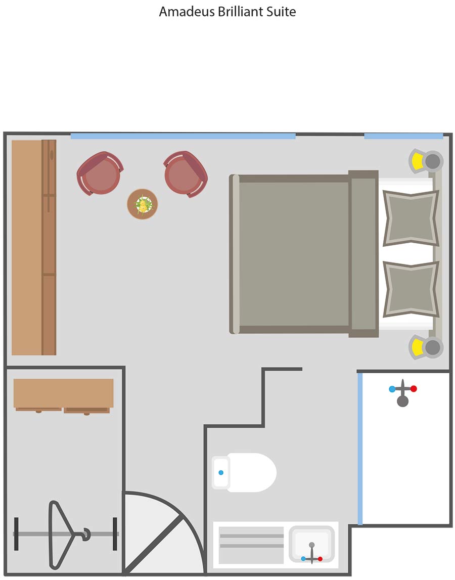 Travel in luxury and style when you choose one of our Deluxe Suites. Our largest en-suite cabins, at 26.4 square metres, a walk-out balcony, walk-in wardrobe an river-view lounge area.