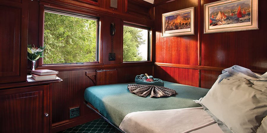Pullman cabins offer a cozy retreat for one or two passengers. Each suite features an en-suite bathroom complete with a shower, toilet, and basin, ensuring convenience and comfort. By day, relax on the comfortable sofa-seat, which easily converts to either a double or twin beds for a restful evening-choose side-by-side or upper and lower bunks for your preference.